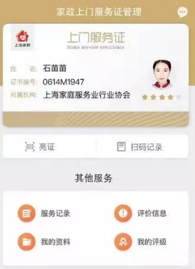 ■ 今年上海家政人员上门服务证将转变为“随申办”电子上门证。用户通过“随申办”APP、微信小程序等渠道可实现持证、亮证、扫证评价等功能,并可动态更新家政机构信息,提高家政行业的信息化水平。